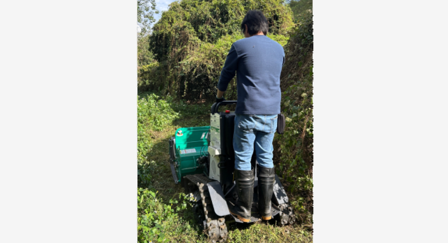 履帶零迴轉錘刀割草機開墾荒地。